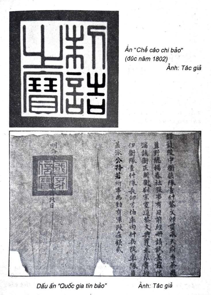 | 3 | Quốc gia tín bảo | 1802 | Gia Long | Các văn kiện tuyên triệu tướng soái, trứng phát sĩ binh |