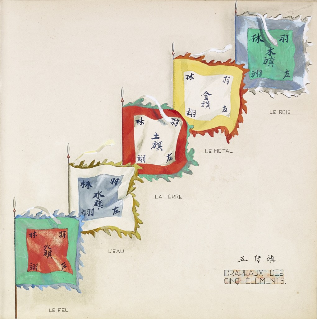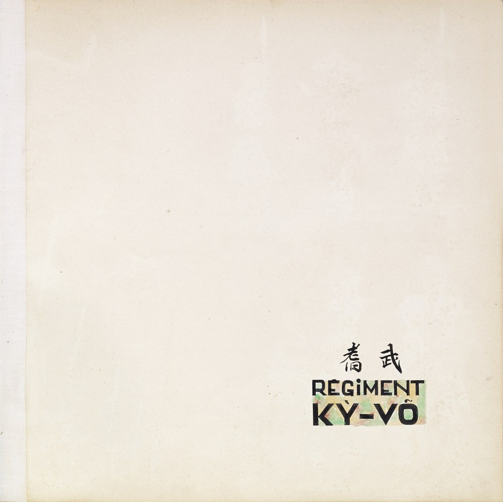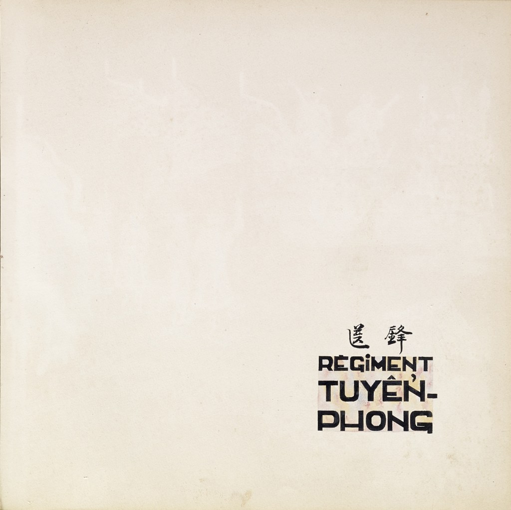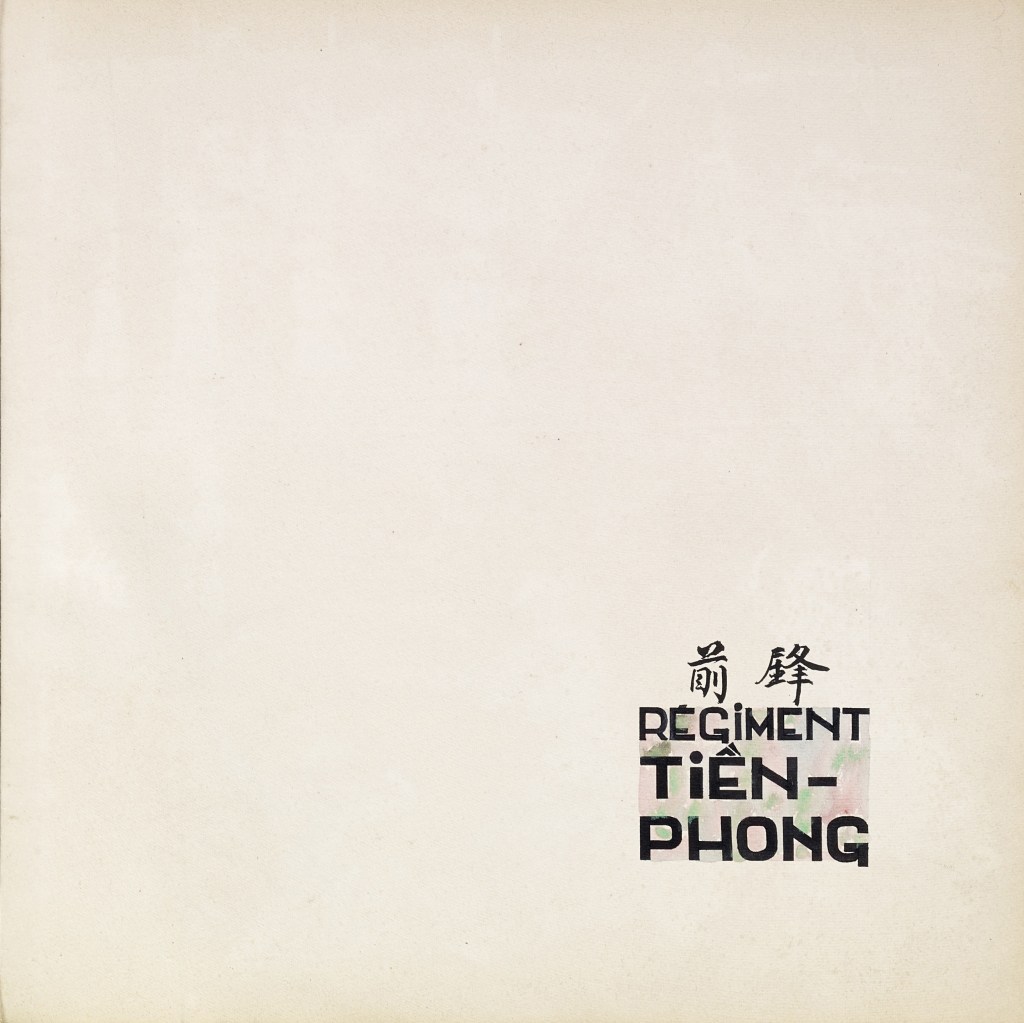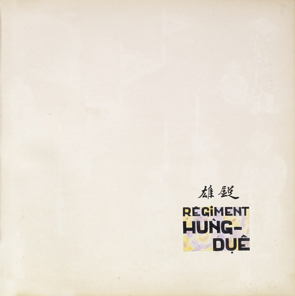 Album “Armée de campagne sous le règne de Tu’ Duc” d’une quarantaine de dessins réalisés par R. Bolliand, montrant des plans de l’armée, les différents costumes et drapeaux. Dans la première partie les feuilles sont reliées partiellement sous forme d’une longue frise repliée en accordéon.